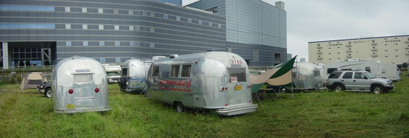 VintageAirstreamオーナーのT氏−’61 BAMBI とF氏−’79 MortorHome 24ftと共にお忙しい中、参加してくれました。
